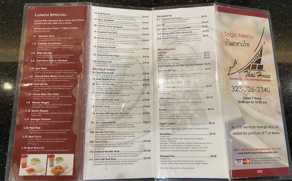 With friendly service, a welcoming ambiance, and generous portions, Thai House Monterey Park promises an exceptional dining experience that should not be missed!